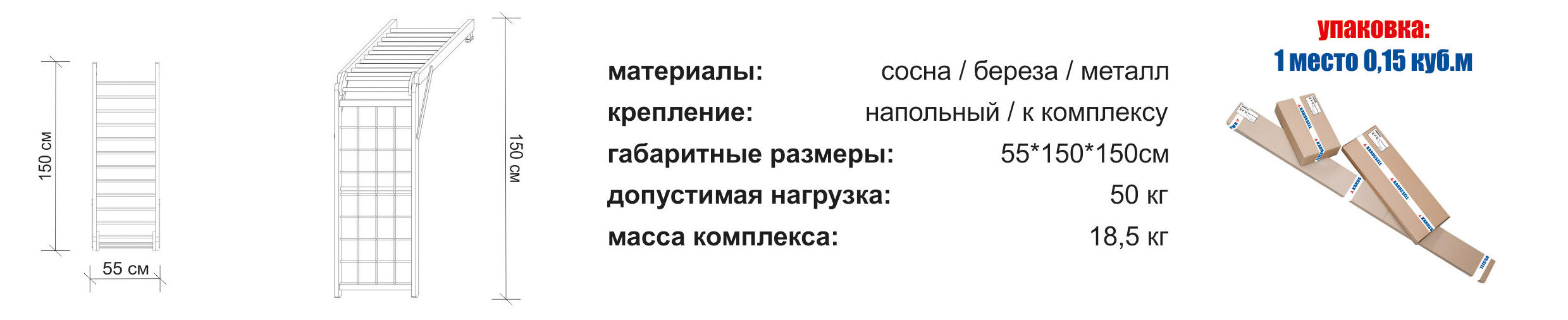 ГАБАРИТЫ: 55*150*150 СМ