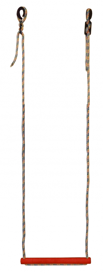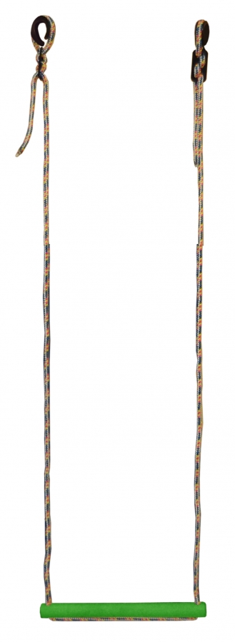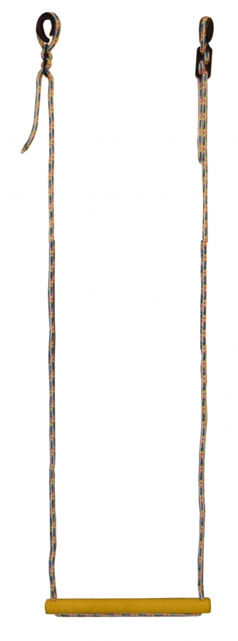 Это деревянная перекладина на верёвке. На ней можно раскачиваться, держась руками, или сидеть на ней, как на качелях. Можно висеть вниз головой, делать подъём с переворотом и кувырки. А это ловкость, цепкость и развитие координации и вестибулярного аппарата. Максимальная нагрузка 80 кг. Фиксируется металлическим фиксатором шнура.