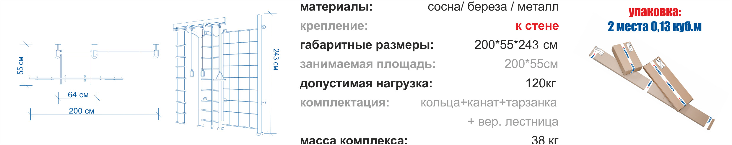 | Комплектация навесного оборудования | Кольца гимнастические, канат, тарзанка, веревочная лестница. |