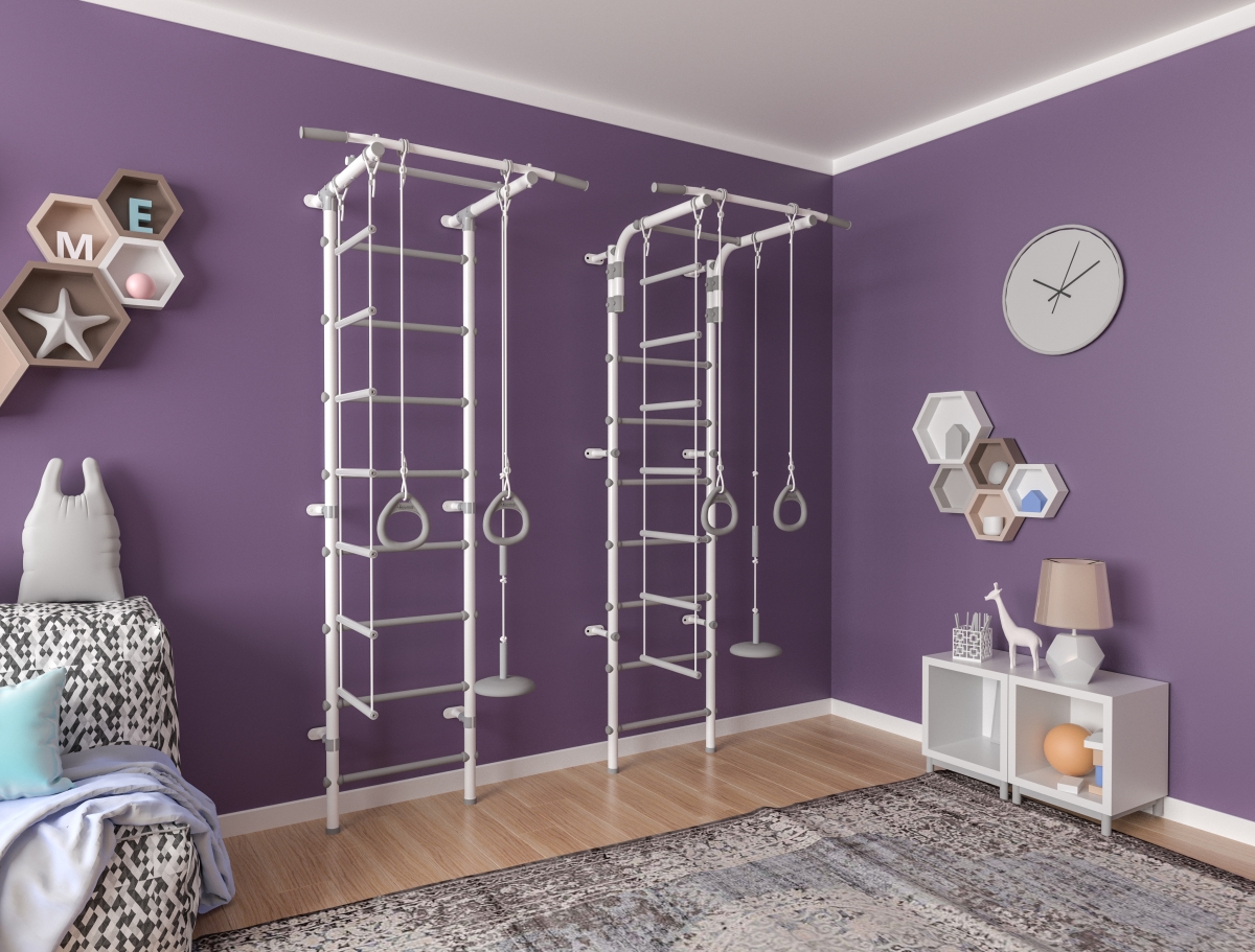 В системе Pastel Formula использована шведская стенка с турником верёвочная лесенка, тарзанка и кольца:
