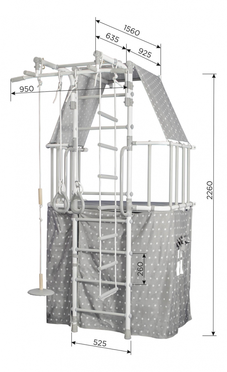 | Комплектация | домик, турник, лестница, тарзанка, кольца |