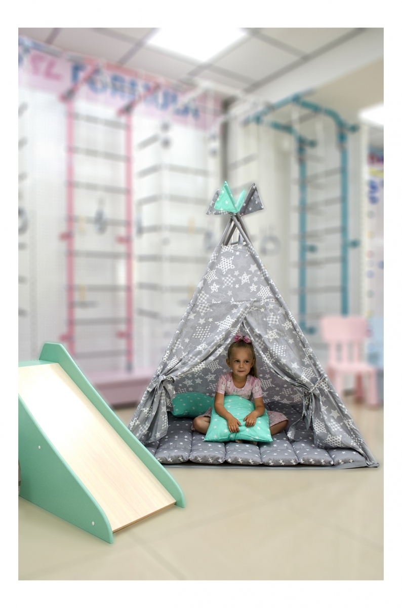 Шалаш для игр и создания личного детского пространства. Устойчивая конструкция из прочных материалов, с защитой от складывания. Шалаш с карманом для мелочей и с удобным окошечком